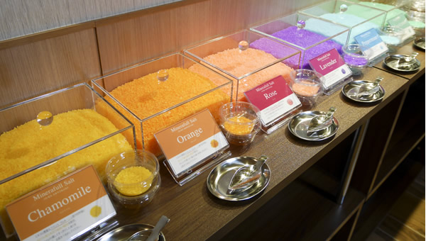 その日の気分に合わせてバスソルトをお選びいただけます。