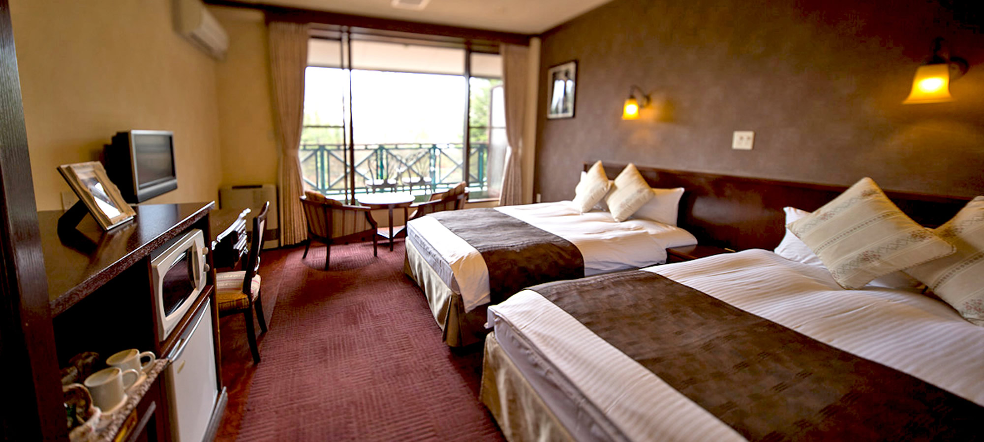 スーペリアはセミダブルのゆったりしたベッドで全室ガーデンビュー。