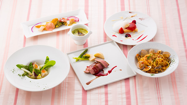 地場の食材、四季折々の旬の食材を使ったフレンチコースをお愉しみ下さい。