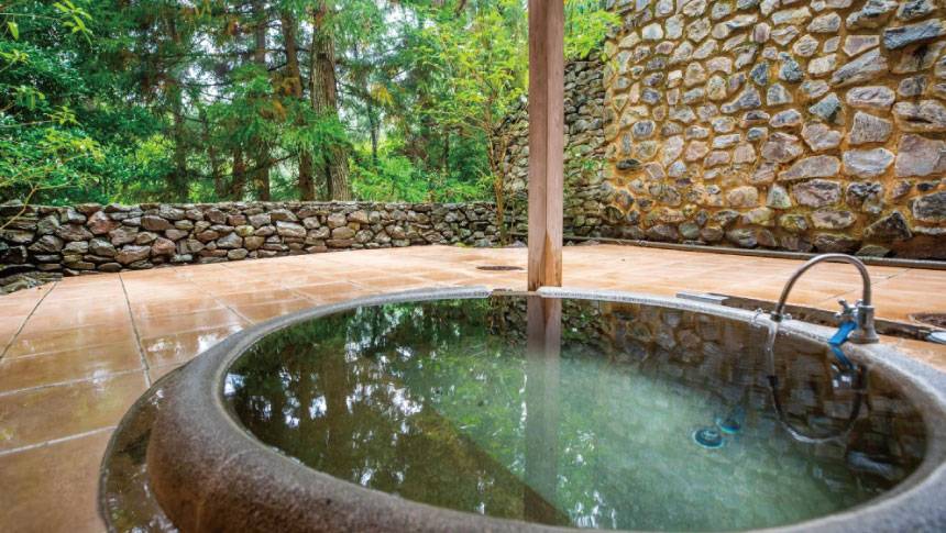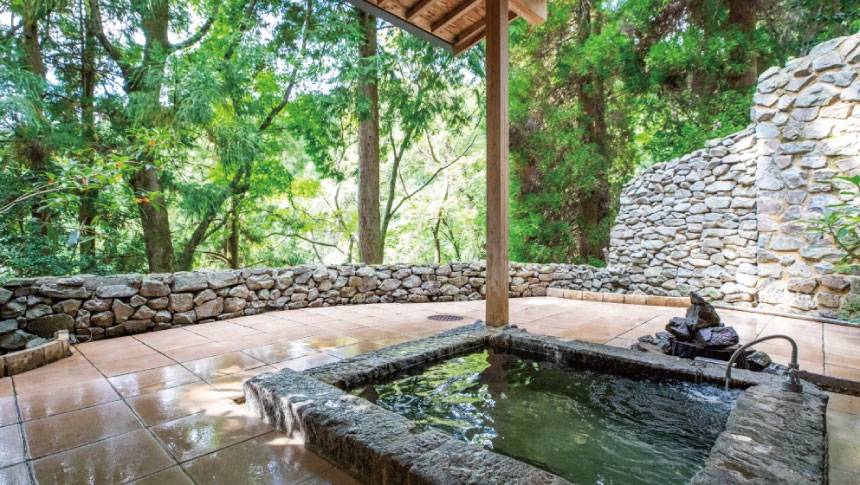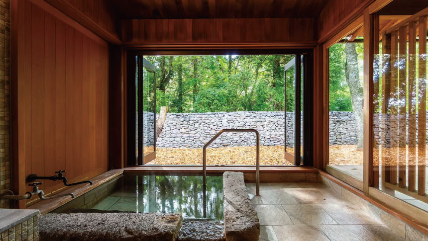 美しい由布岳の頂上向きに配置された露天風呂、それぞれ個性が違う貸切風呂に加え、各お部屋にも温泉をご用意しております。