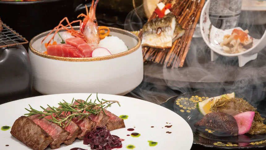 寒暖の差が激しい由布院盆地は、四季折々の農作物を美味しく育てます。早朝に豊後水道より水揚げされた魚は自慢の逸品。九州の旬の食材を吟味した自慢の創作日本料理をお届けいたします。レストラン店内にも愛犬同伴が可能です。