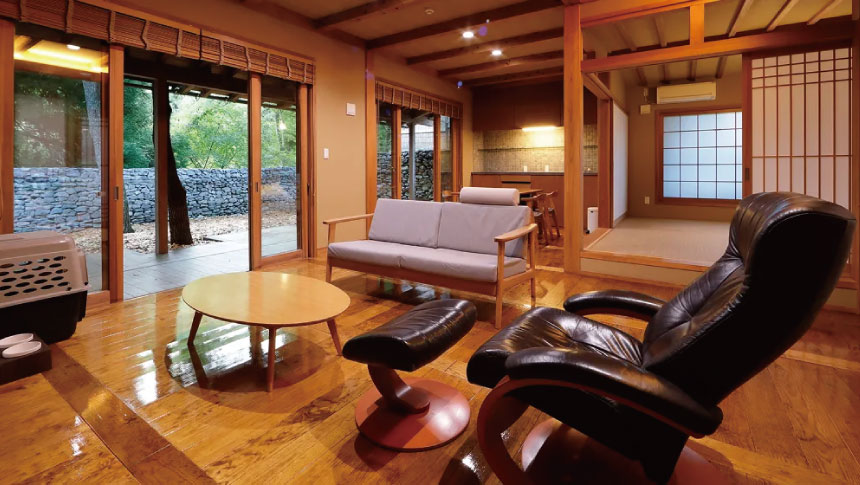 由布岳を望む大自然の中に、愛犬と泊まれる温泉宿