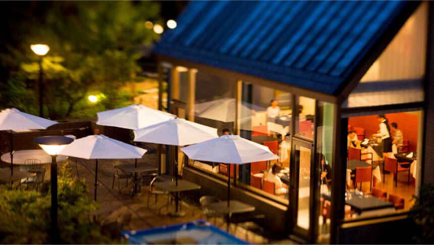 スタンダードなお部屋に加え、小庭・テラス付きのお部屋も。男女別の大浴場で那須高原温泉に癒され、お食事はレストランで愛犬を連れてお食事をお楽しみいただけます。