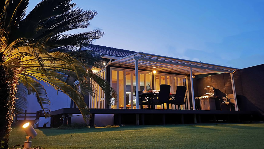 プールハウスは2m超えの外壁を備えたプライベートプールを完備。