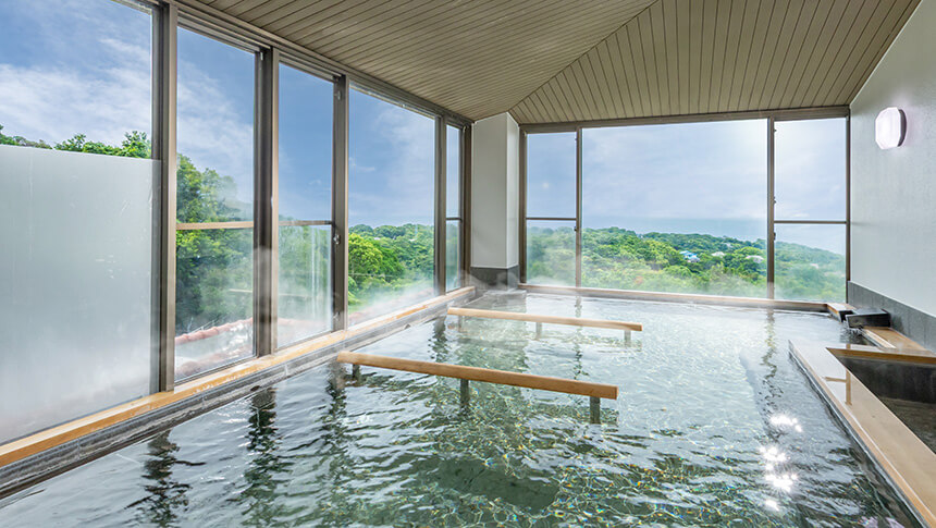大浴場からは相模湾を一望。伊豆大島を目の前に望みます。