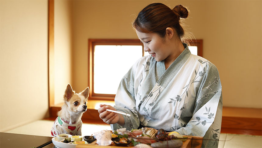 5. 新潟・瀬波温泉のペットと泊まれる宿「上州苑」。 愛犬・愛猫と一緒に温泉と海の幸を楽しむ癒しのひとときを。