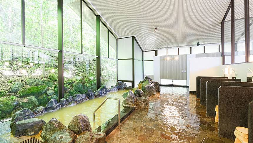 敷地から湧き出る天然温泉「美人の湯」をお楽しみください